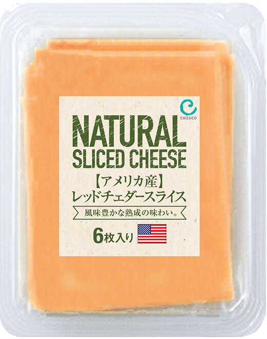 手軽で便利なスライスタイプのアメリカ産レッドチェダーチーズ。使いやすい6枚入りです。トーストやピザはもちろん、そのままサンドイッチやハンバーガーにもおすすめです。